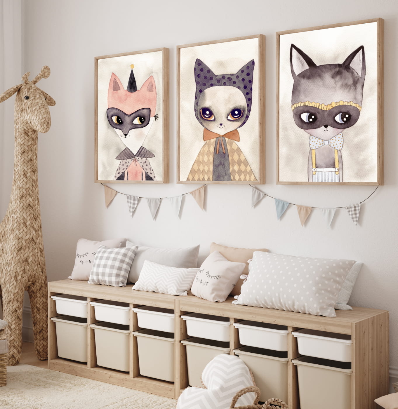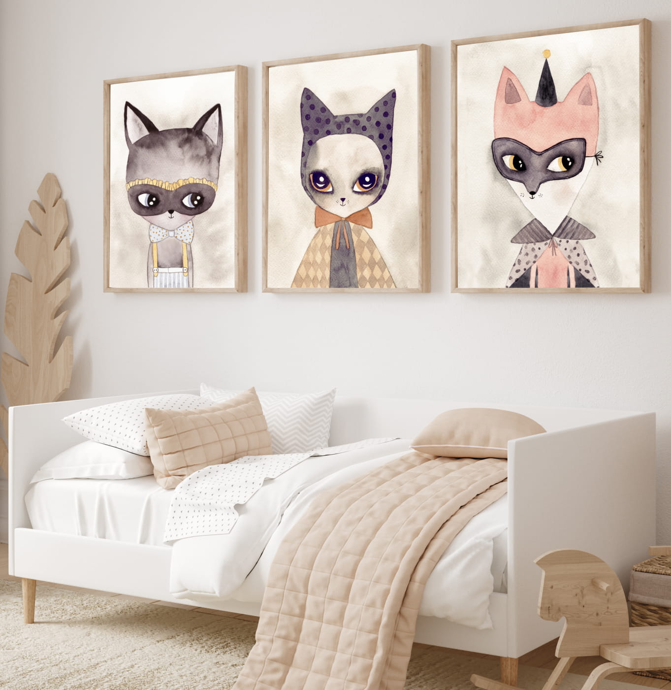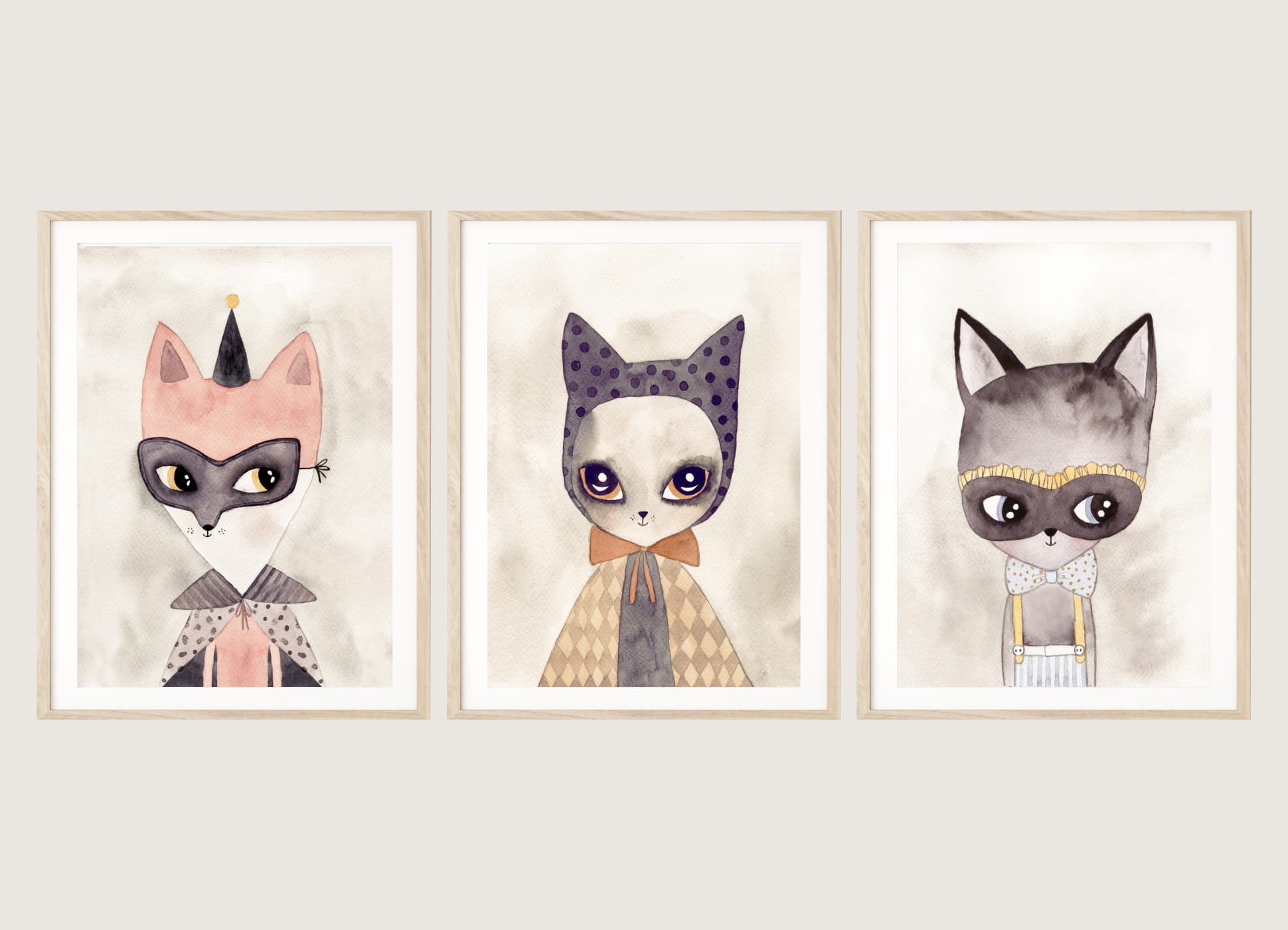 Zestaw 3 plakaty obrazki koty i lis DK127