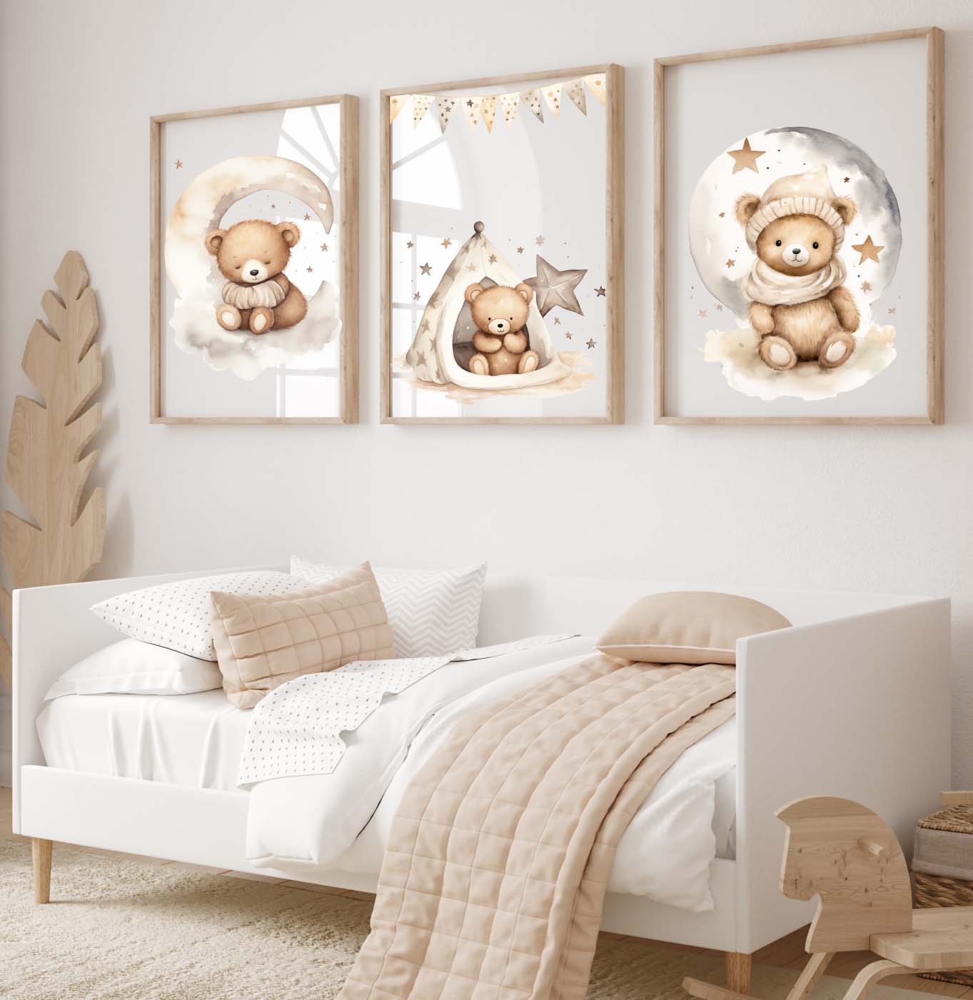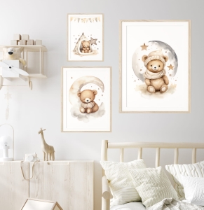 Zestaw 3 plakaty pastelowe misie beż - Wzór 2