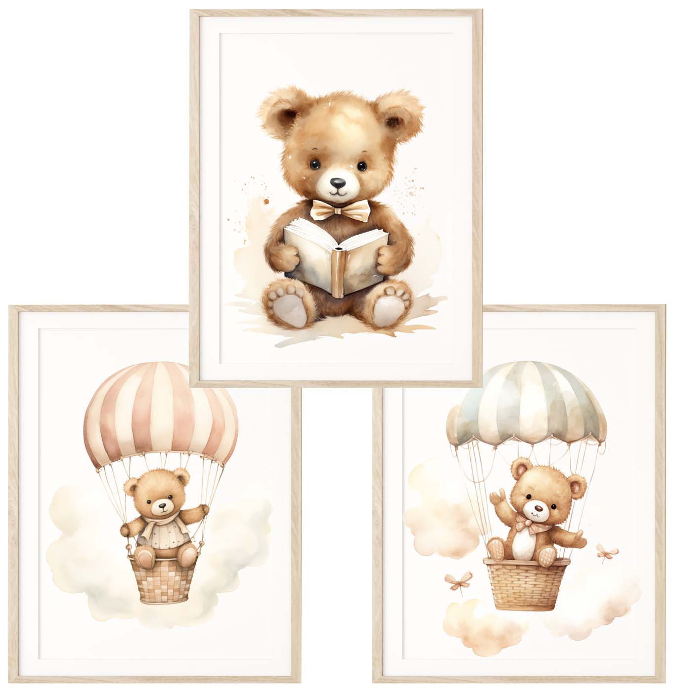 Zestaw 3 plakaty pastelowe misie beż - Wzór 3