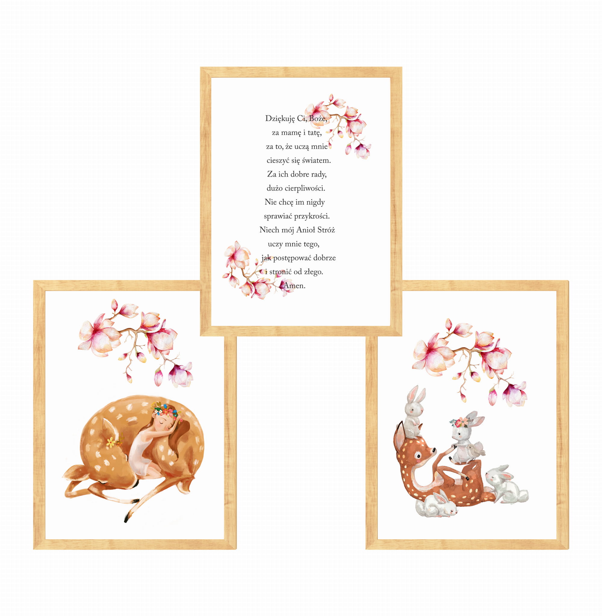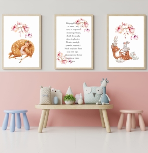 Zestaw 3 plakaty sarenka ,kwiaty ,modlitwa