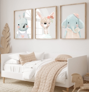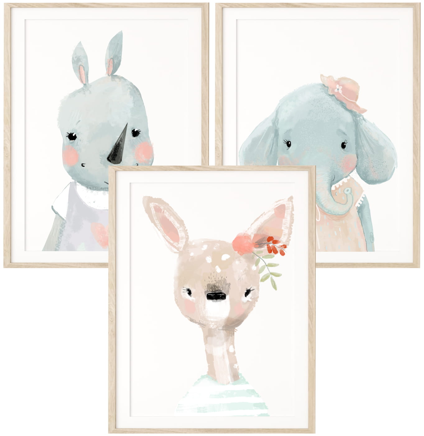 Zestaw 3 plakaty słoń sarna nosorożec DK43