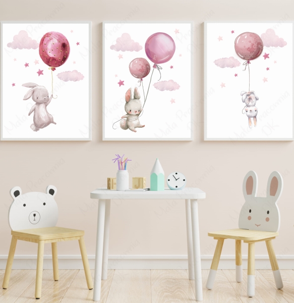 Zestaw plakatów króliczki,chmurki,gwiazdki