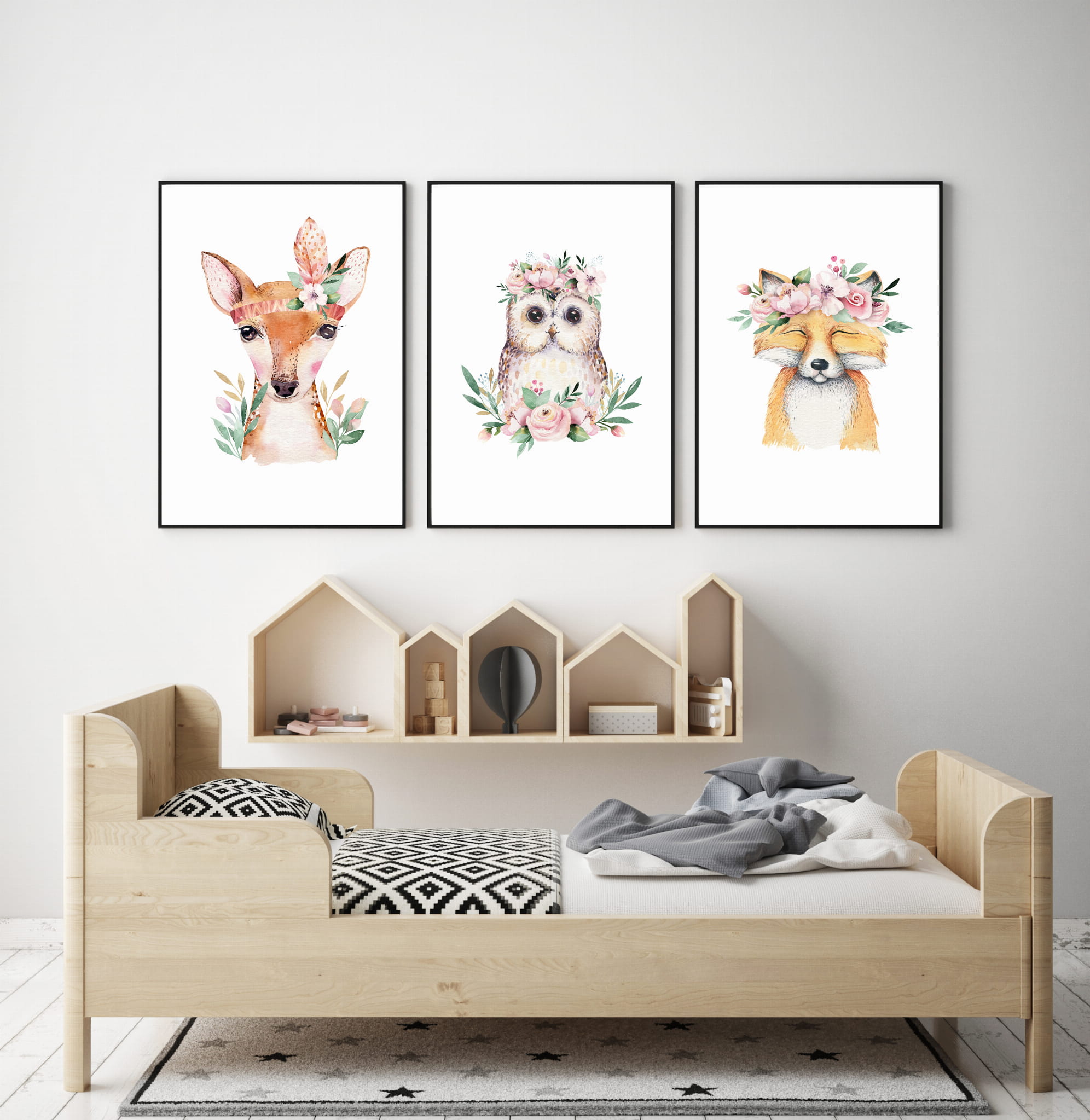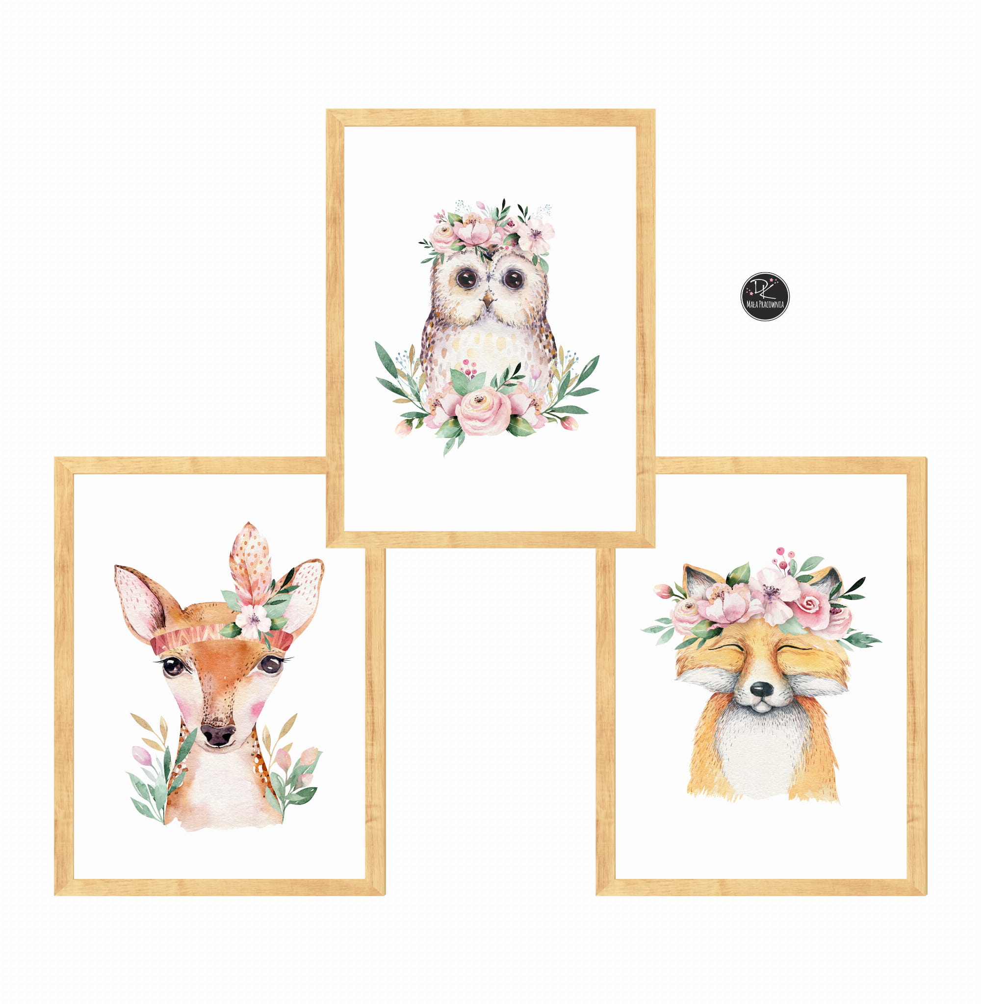 zestaw 3 obrazki sowa ,lis ,sarenka Nr1