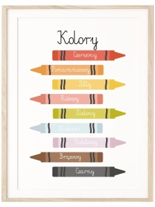 Plakat Montessori do nauki kolorów. Estetyczna i prosta forma wspierająca rozwój dziecka w domu, przedszkolu i przestrzeni edukacyjnej.
