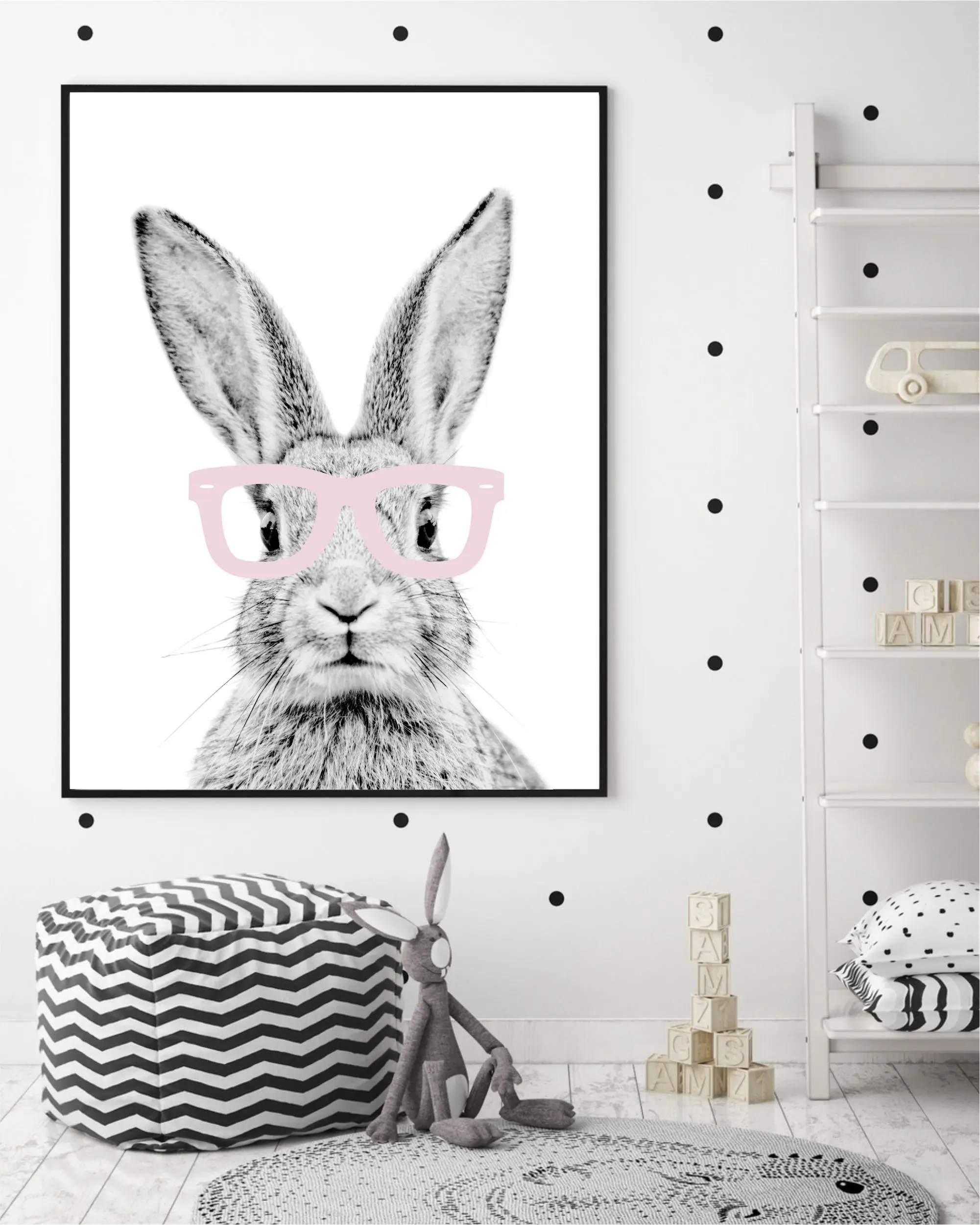 Królik w różowych okularach | Plakat na ścianę dla dzieci