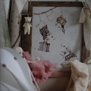 Myszki Podróżniczki Vintage Travel to opowieść o małych odkrywczyniach, które wyruszyły w świat z walizeczkami pełnymi niespodzianek. Ta ręcznie malowana ilustracja powstała specjalnie dla Małej Pracowni i przyciąga uwagę subtelnymi retro detalami, pastelami i lekkością ruchu. Plakat pięknie uzupełni kącik czytelniczy, ścianę nad łóżeczkiem lub galerię obrazków w pokoju dziecka. To dekoracja, która dodaje wnętrzu charakteru i wywołuje uśmiech za każdym razem, gdy się na nią spojrzy.