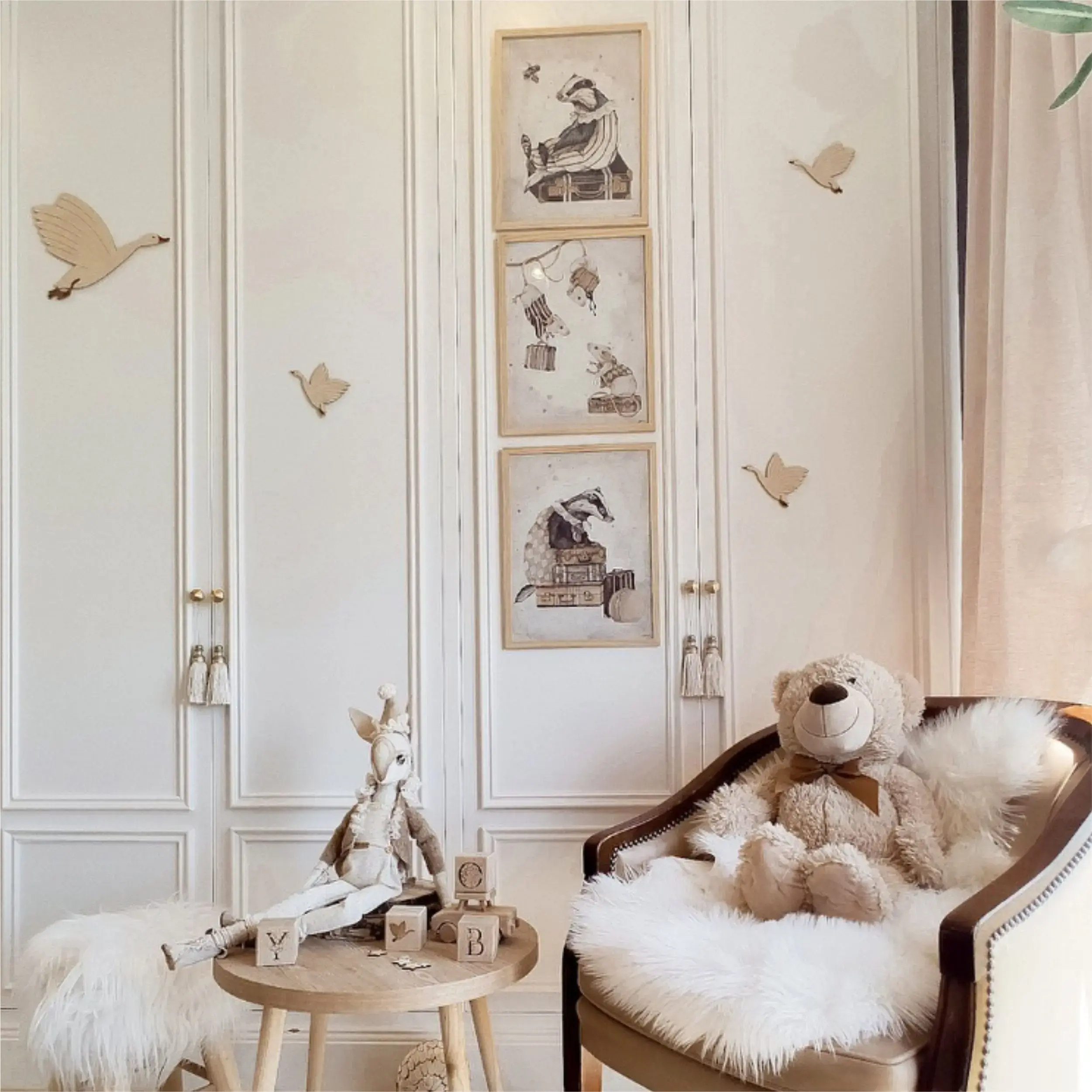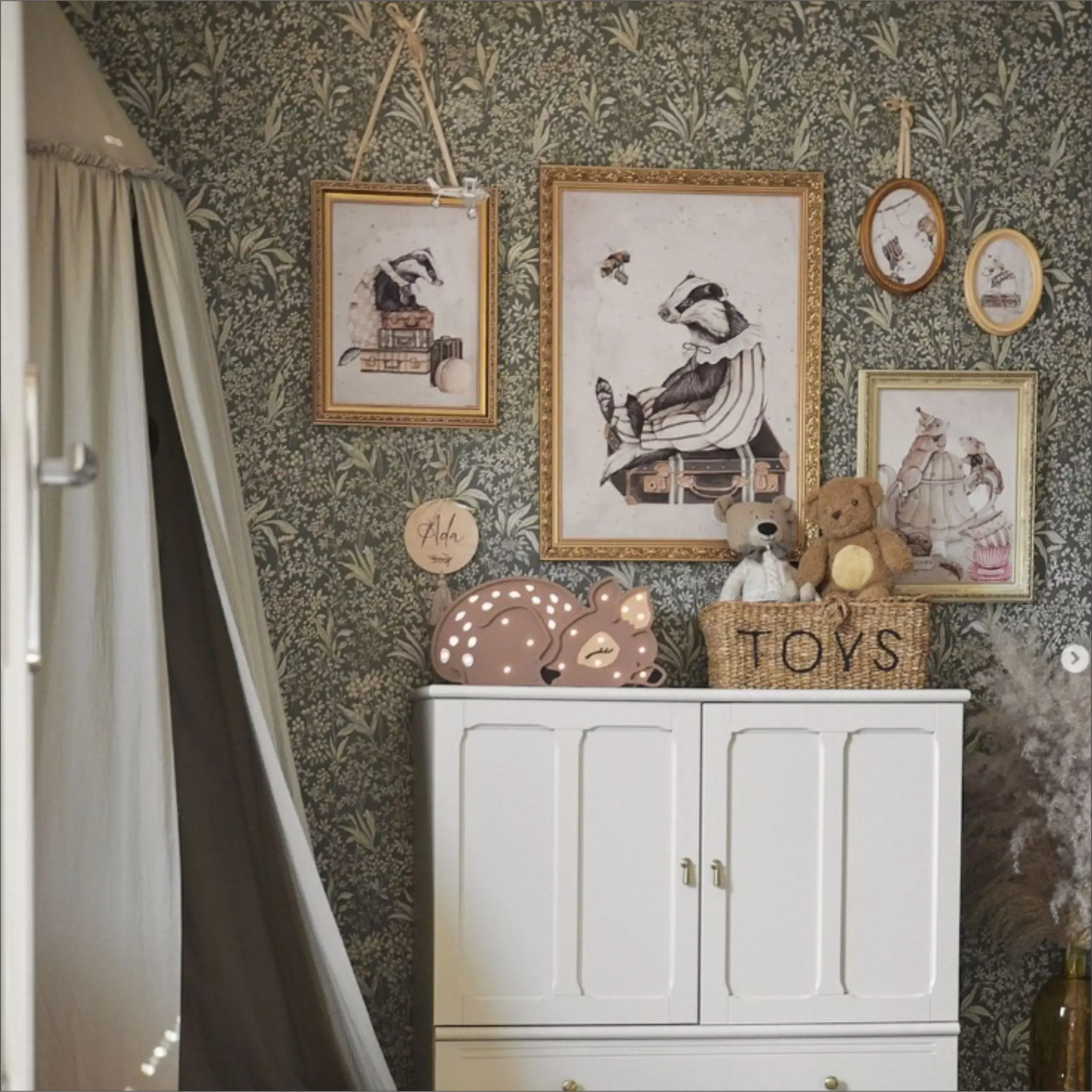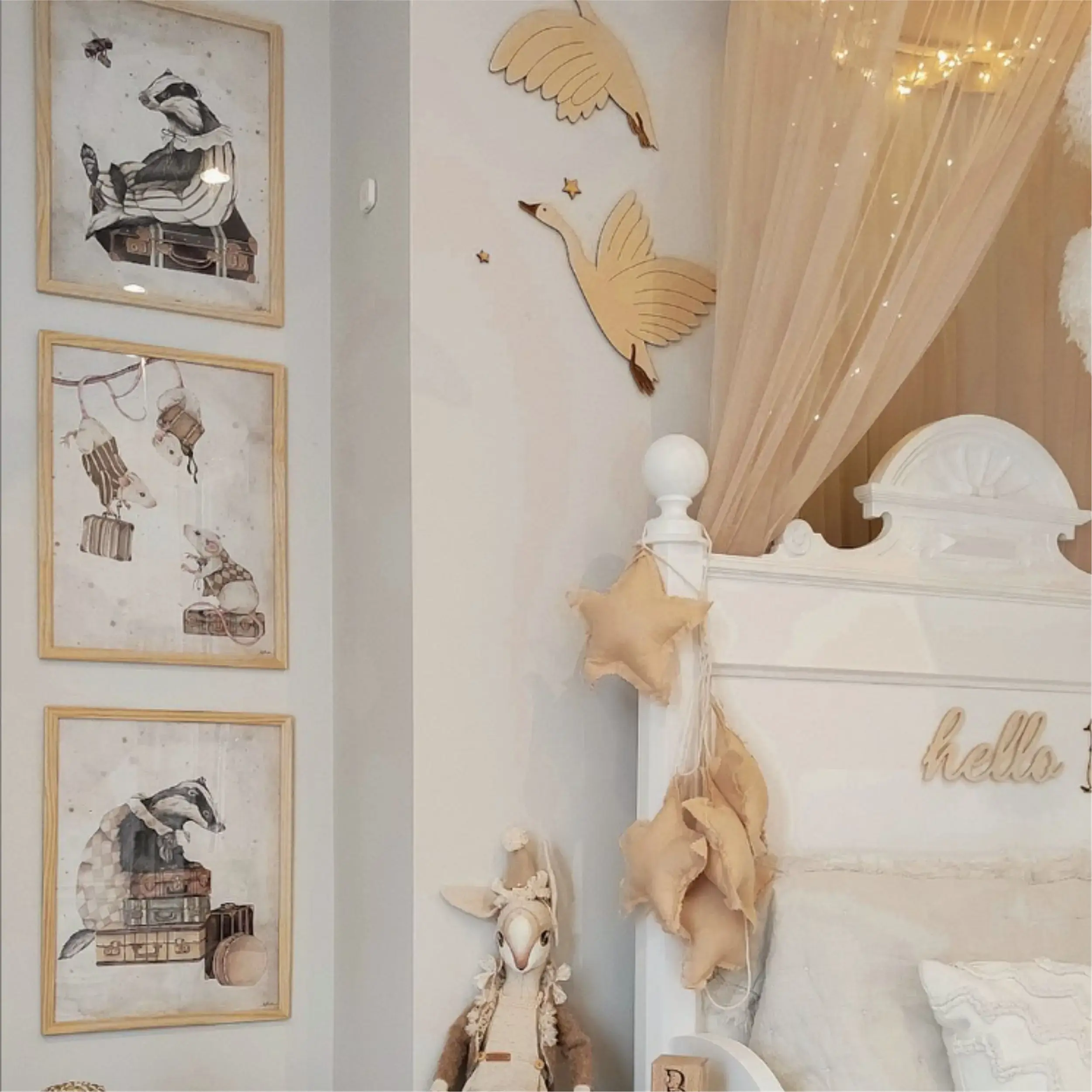 Wzór został zaprojektowany i ręcznie namalowany na wyłączność dla Małej Pracowni, dzięki czemu każdy plakat ma swój indywidualny, artystyczny charakter. To niepowtarzalne dzieło, które łączy estetykę, delikatność i dziecięcą wyobraźnię.