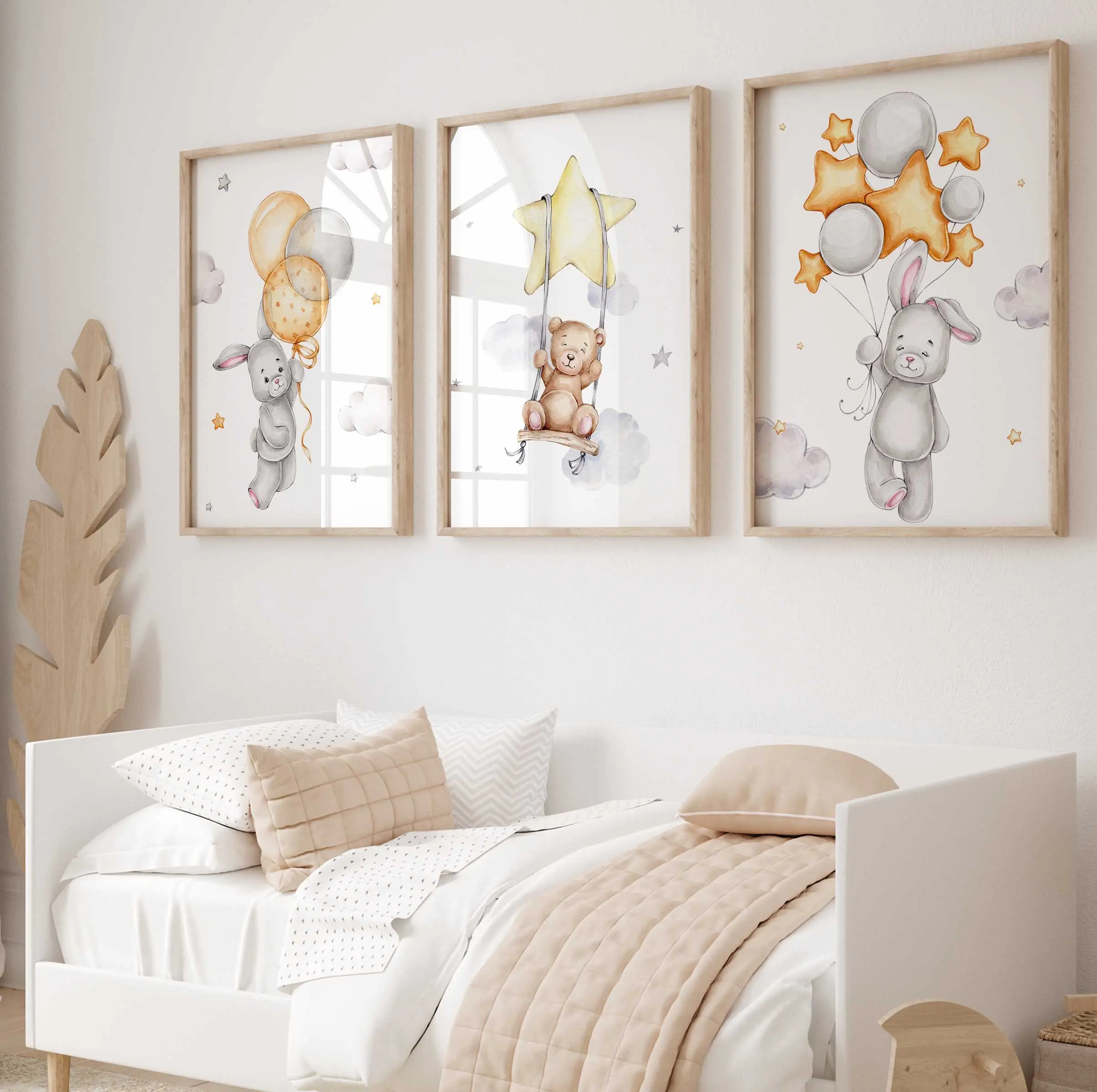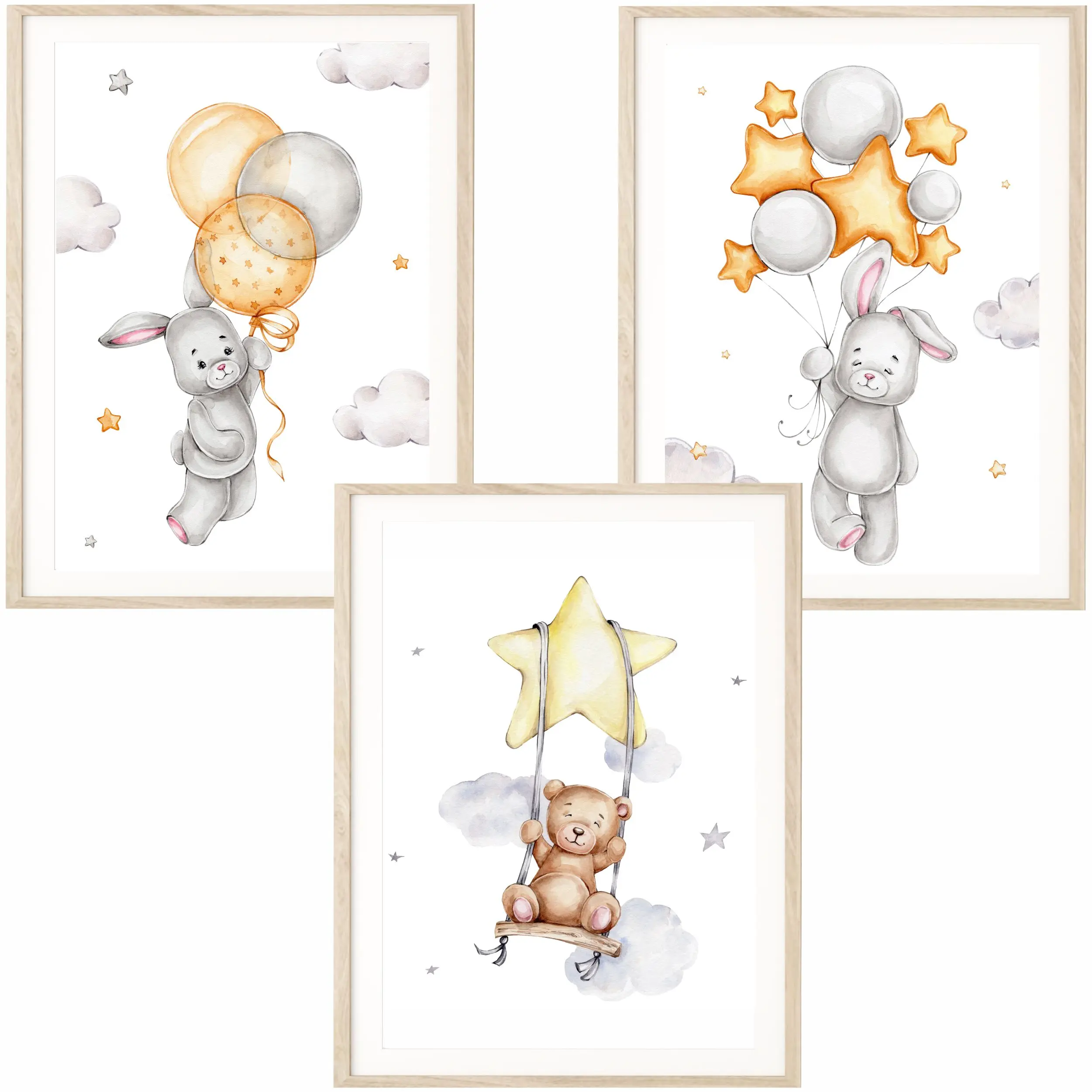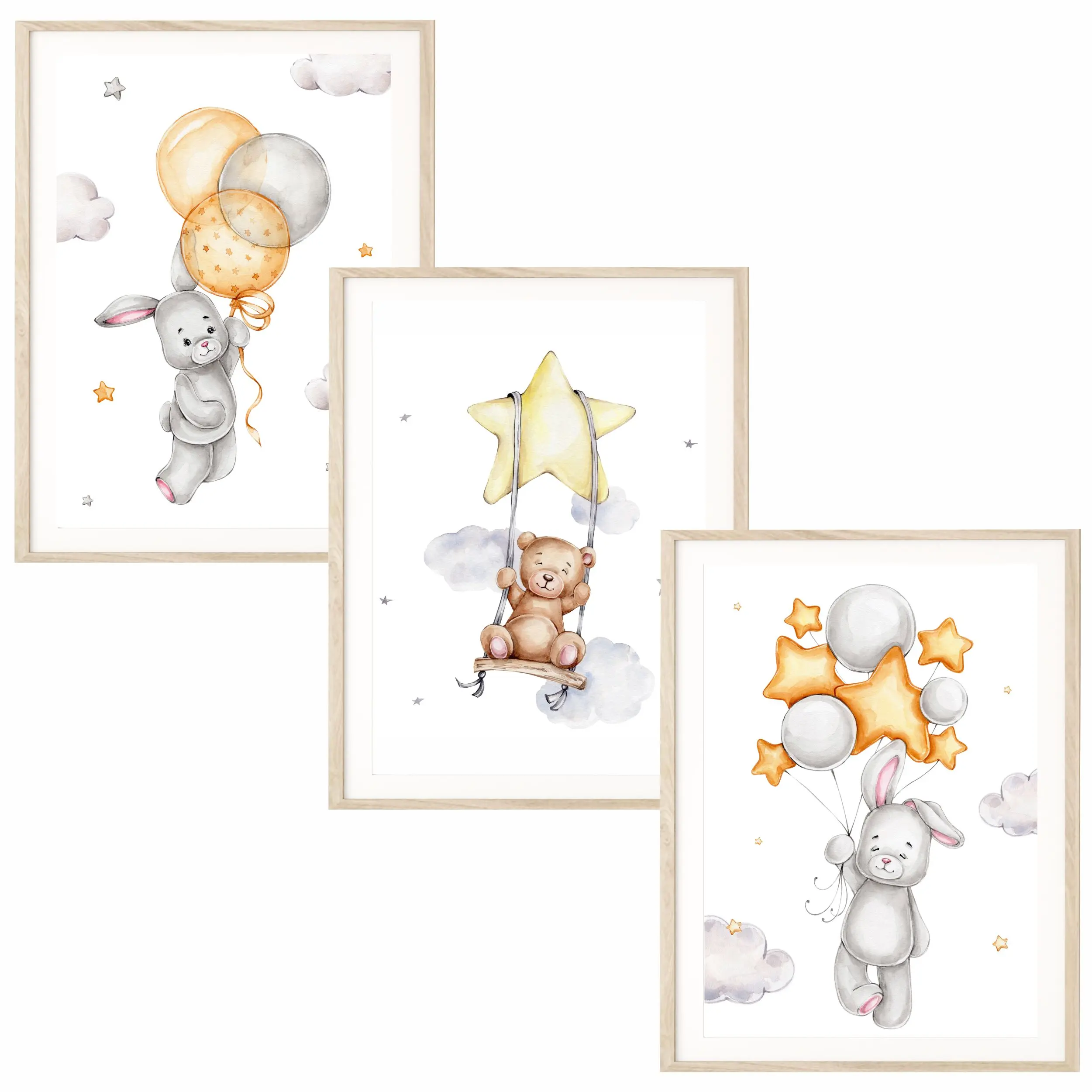 Misie i Zajączki z Balonami – Tryptyk | Zestaw 3 Plakatów do Pokoju Dziecka