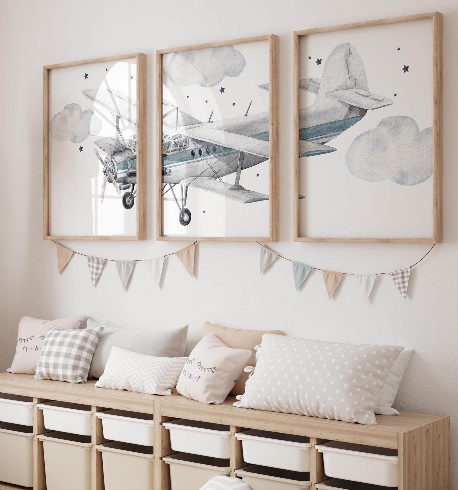Motyw samolotów i retro balonów to ponadczasowy wybór, który zachwyci każdego małego miłośnika przygód. Plakaty nie tylko upiększą ścianę, ale również pobudzą dziecięcą wyobraźnię i wprowadzą atmosferę beztroskich podróży.
