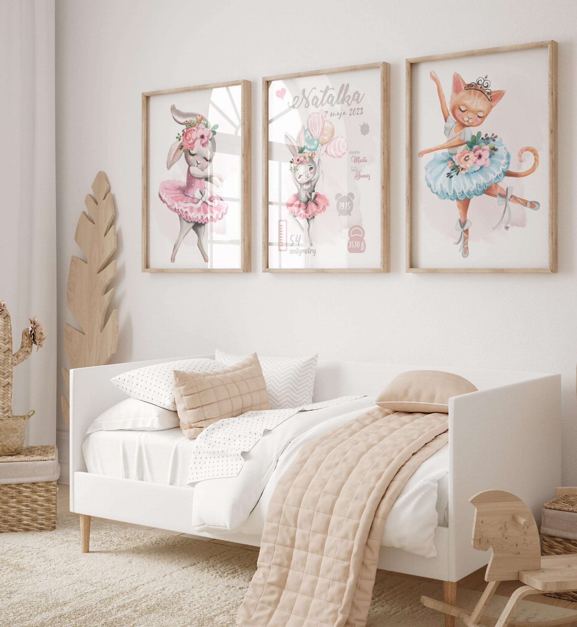 Zestaw trzech plakatów z kolekcji baletowej to doskonały sposób na ożywienie pokoju dziecięcego. W skład zestawu wchodzą urocze ilustracje kotka sarenki oraz flaminga które razem tworzą magiczną atmosferę pełną radości. Te kolorowe postacie nie tylko zachwycą najmłodszych, ale także dodadzą uroku każdemu wnętrzu, stając się jego wyjątkowym elementem.
