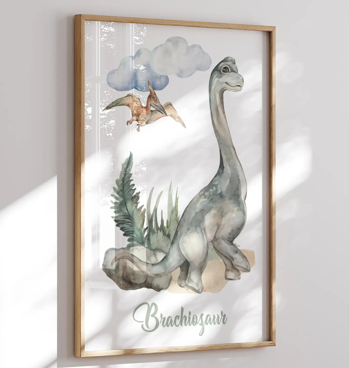 Ten wyjątkowy plakat został stworzony z myślą o dzieciach, które fascynują się prehistorycznym światem dinozaurów. Brachiozaur, dumny olbrzym, przeniesie pokój Twojego malucha do czasów, gdy te majestatyczne stworzenia stąpały po Ziemi.