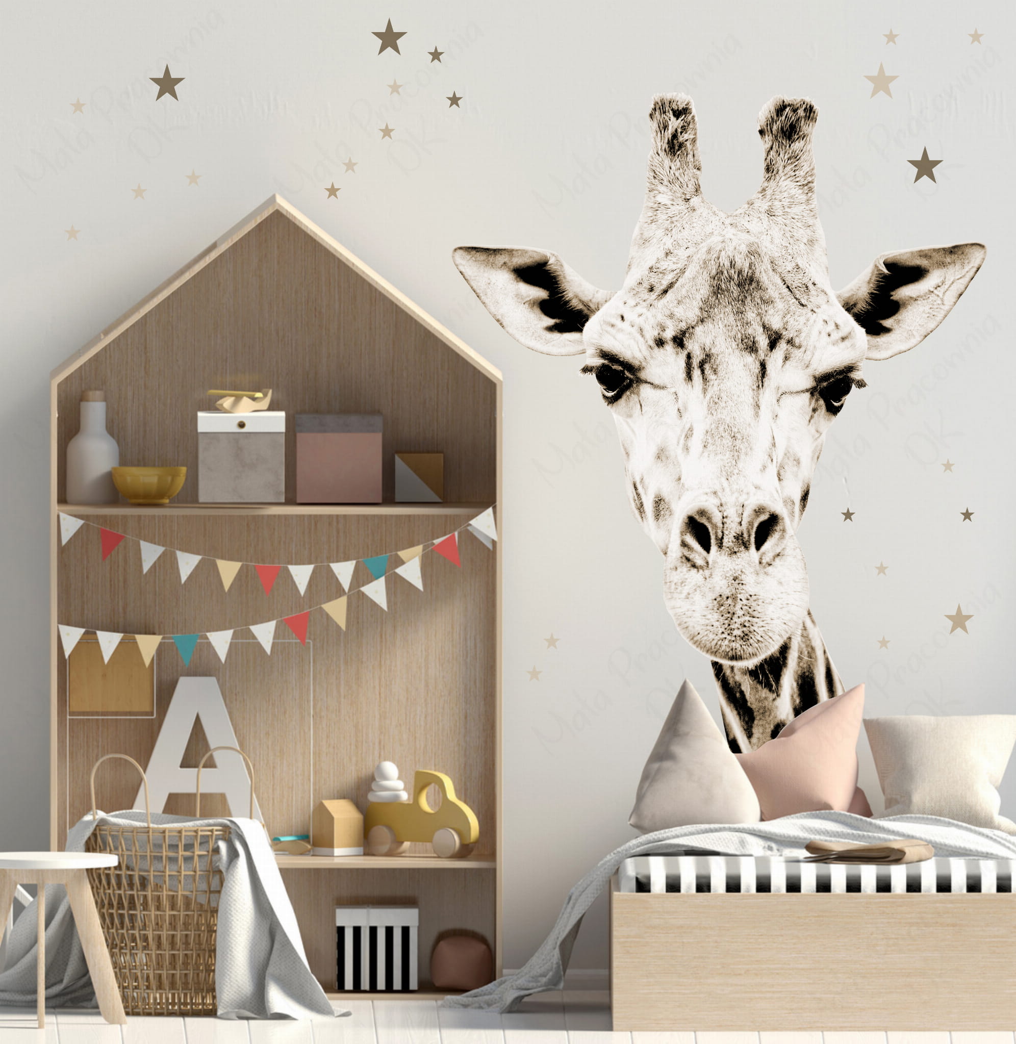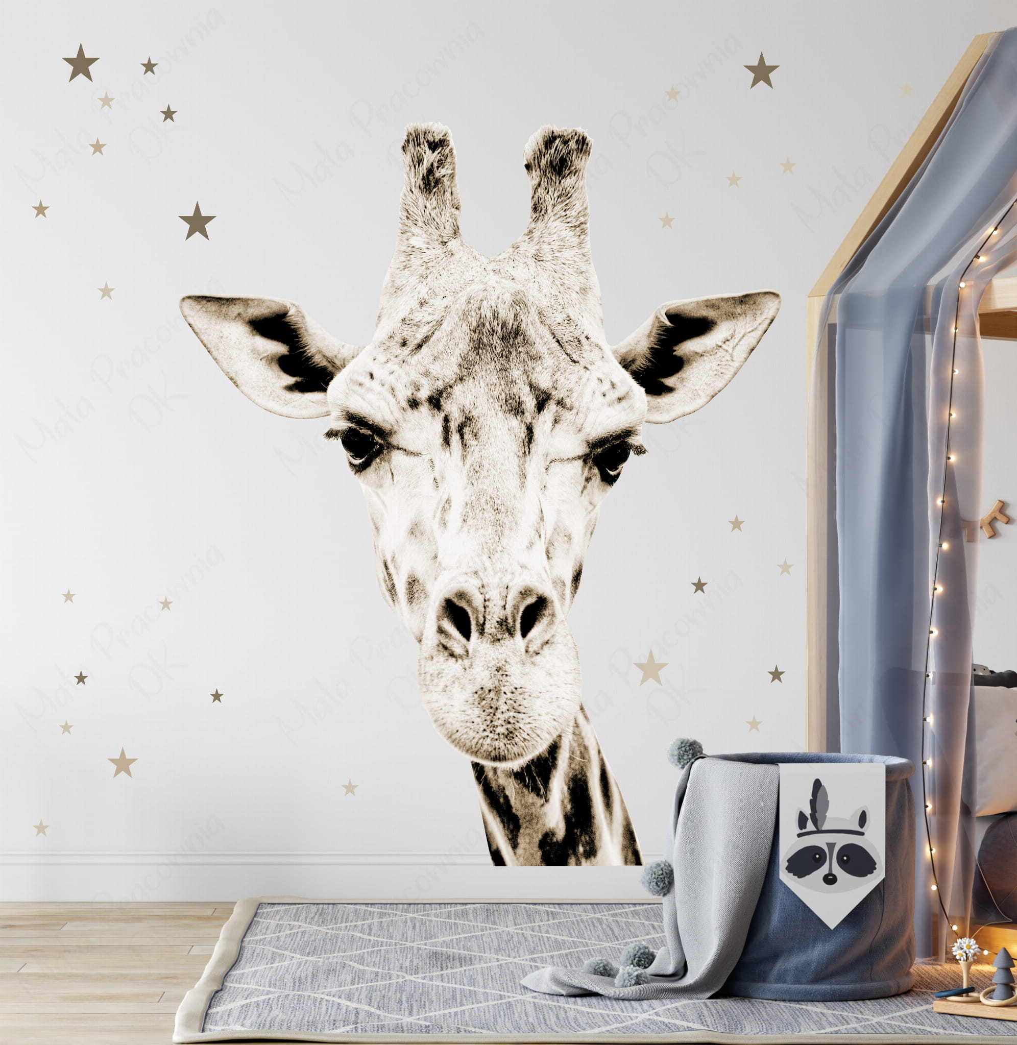 Idealna do każdego wnętrza, które potrzebuje odrobiny natury i delikatności. Z żyrafą sepia stworzysz przestrzeń pełną magii i inspiracji, gdzie dzieci będą mogły marzyć, bawić się i rozwijać w towarzystwie tego wyjątkowego zwierzęcia.